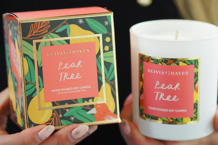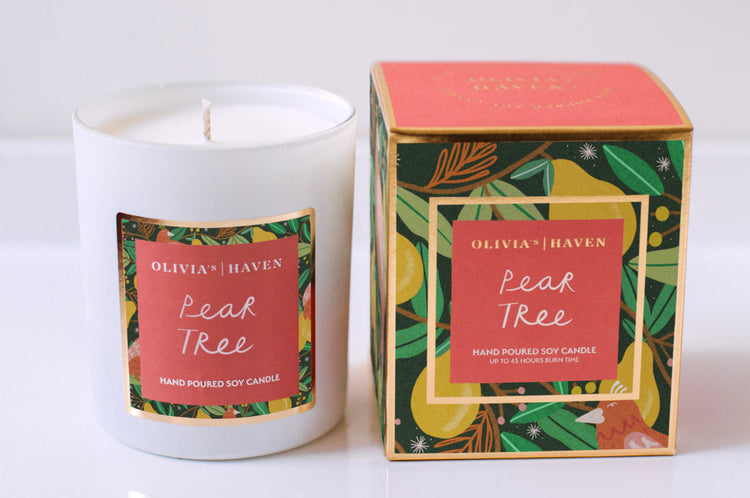 I created this scent using notes of spiced pears, cinnamon, sweet plums and vanilla in honour of the humble pear and the joy it brings our whole family throughout the festive season.
